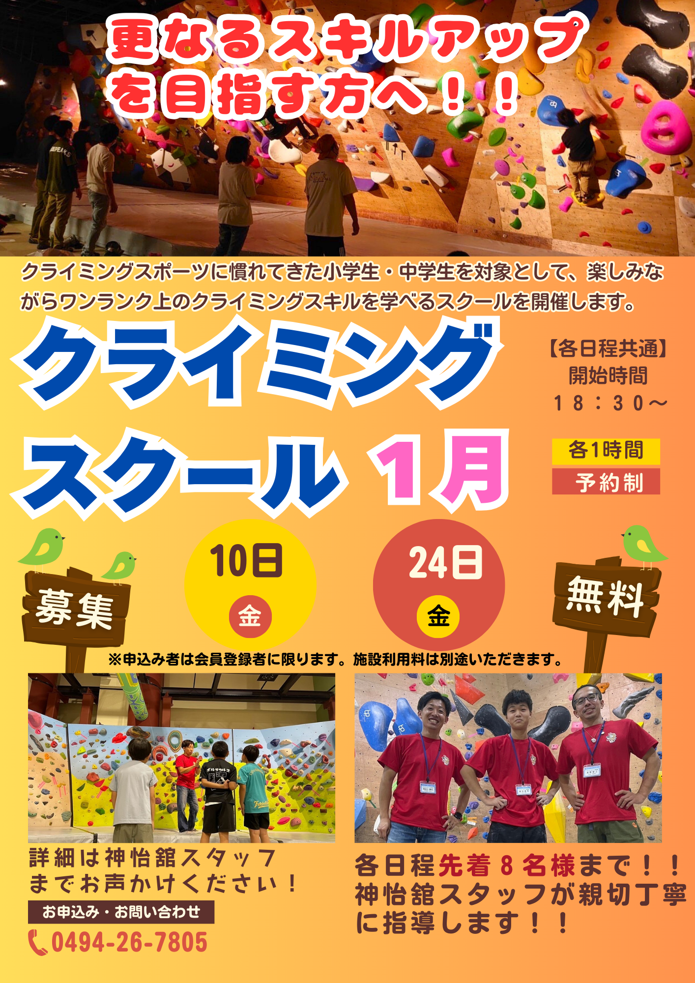 【お知らせ】 R6.12.27 神怡舘クライミングスクールの開催について(1月)