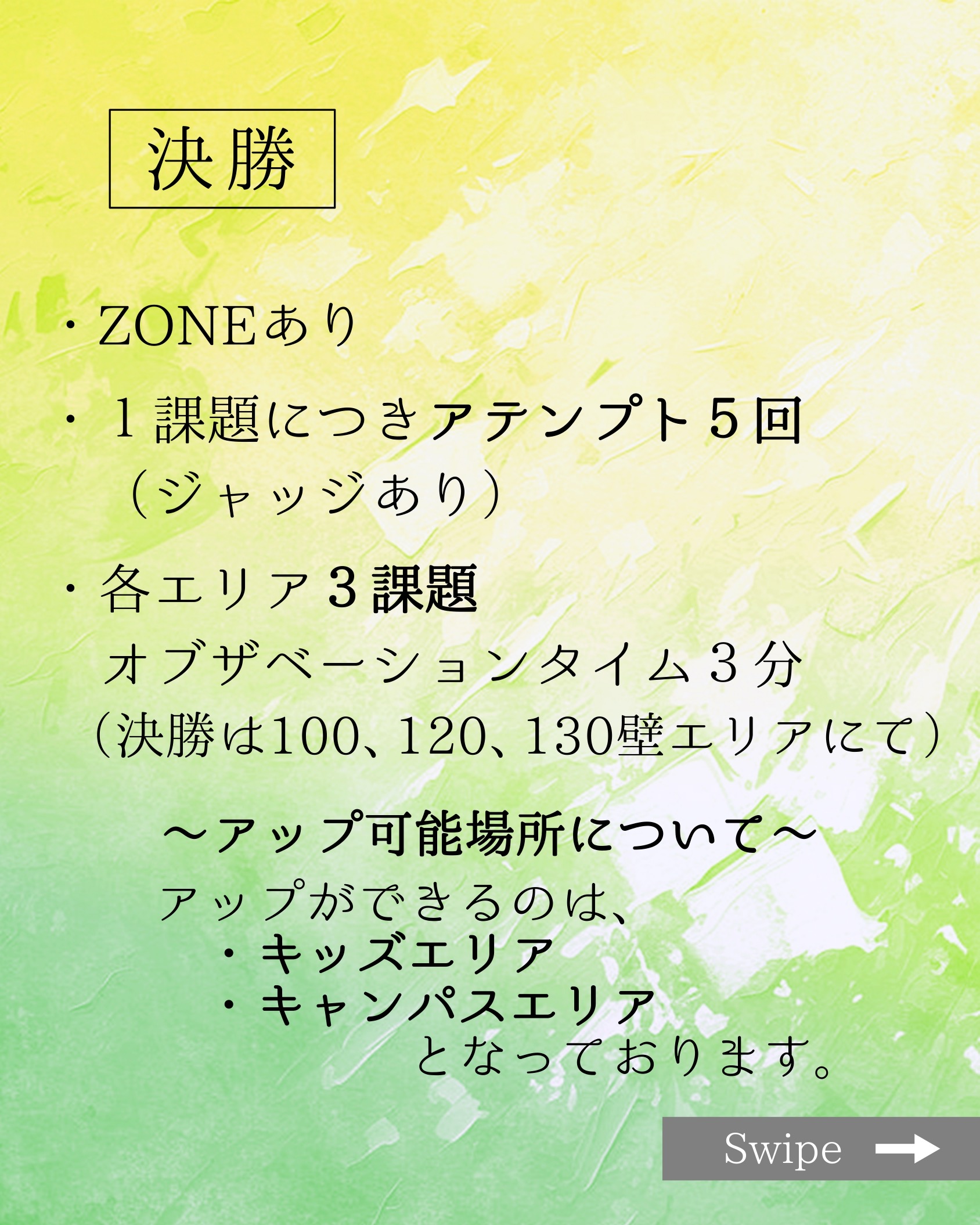 【決勝ラウンド(ビギナー6名 ミドル6名 マスター6名 エキスパート6名) 】 競技開始16:20~