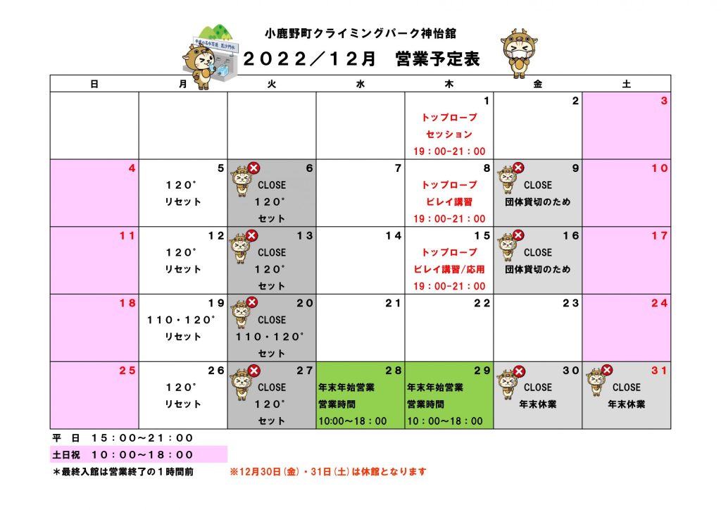 12月 営業予定