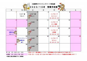 10月 営業予定