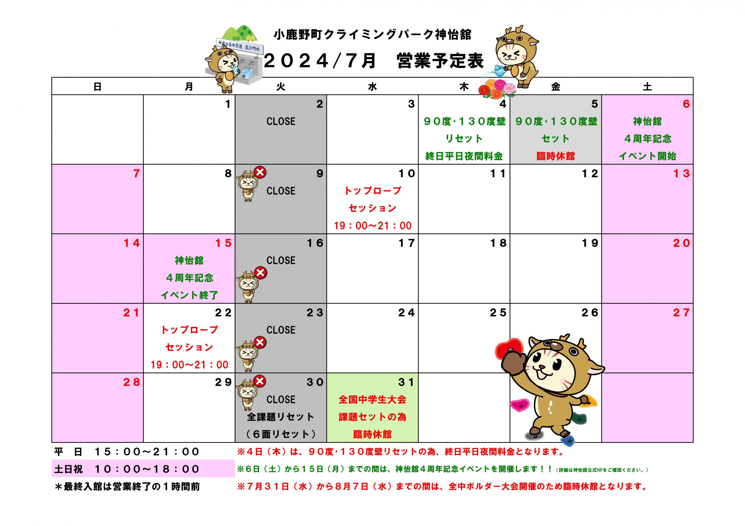 7月 営業予定
