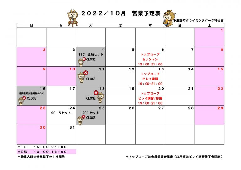 10月 営業予定