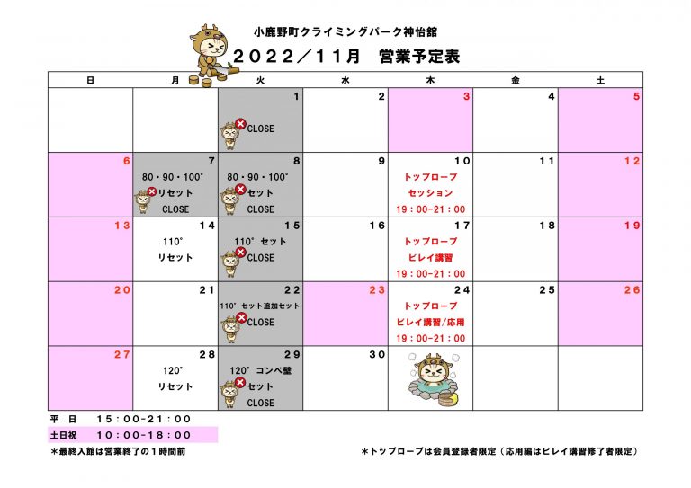 11月 営業予定