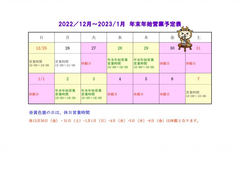 2022年末・2023年始 営業予定
