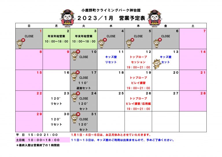 1月 営業予定