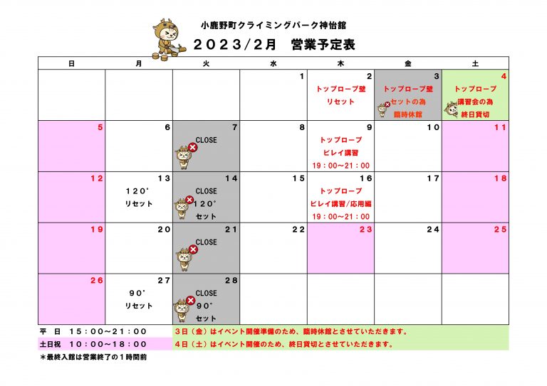 2月 営業予定