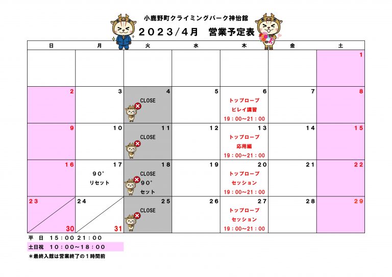 4月 営業予定