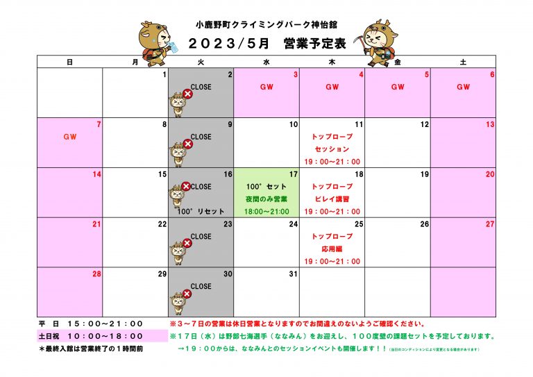 5月 営業予定