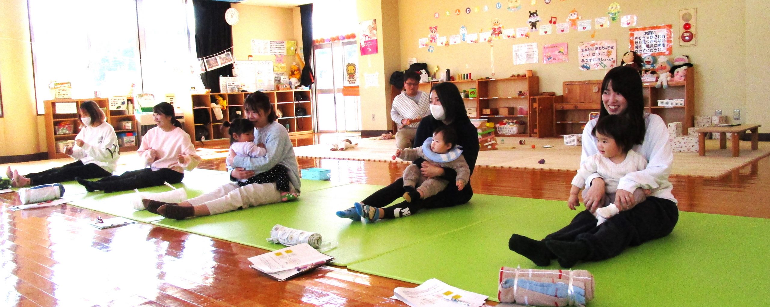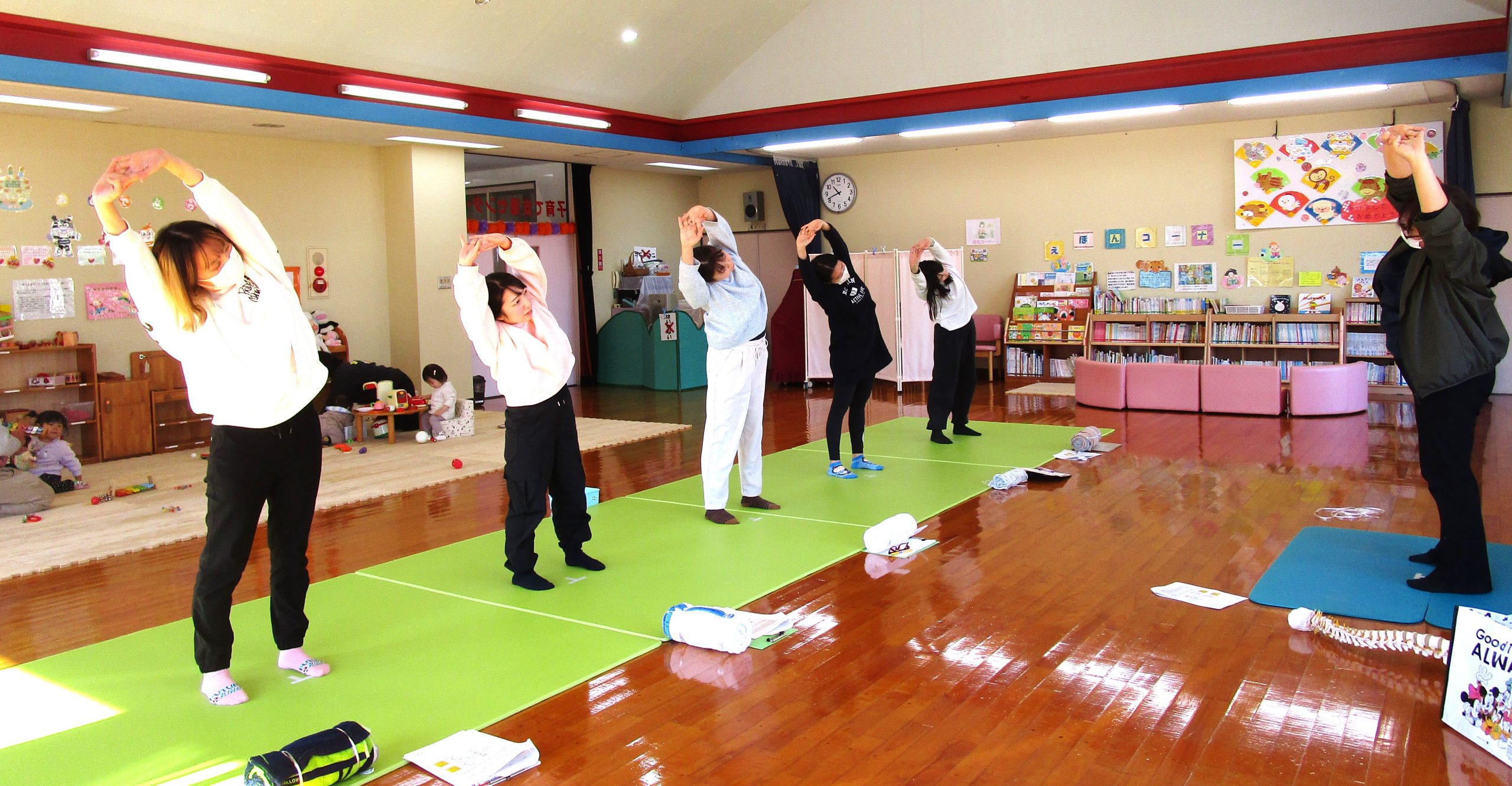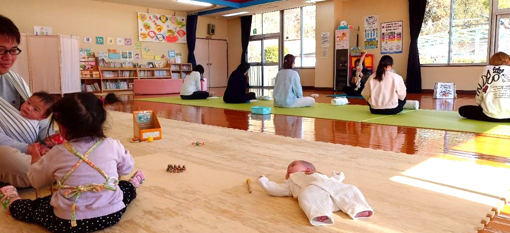5名のママが参加され、産後の体に大切なストレッチと筋トレ、リラックスできる首枕の体験や個別相談を行いました。講師は、なごみ整体院の鎌田先生です。体が楽になった! リラックスできた!と感想をいただきました。