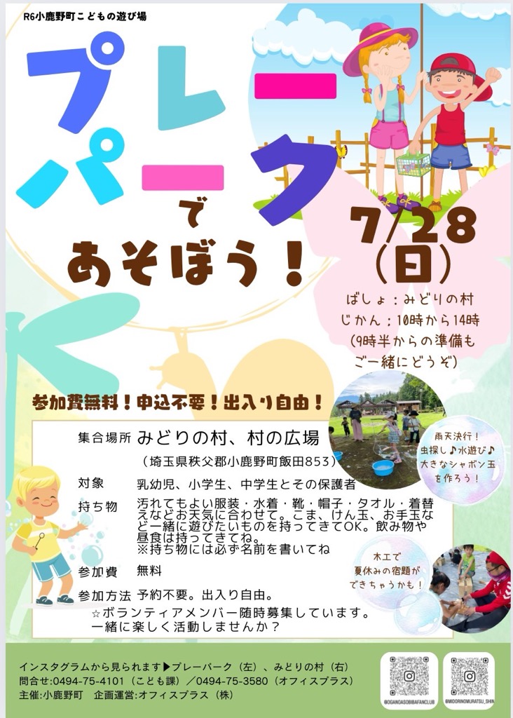 プレーパーク 「夏の外遊びを楽しもう」【チラシ】 |