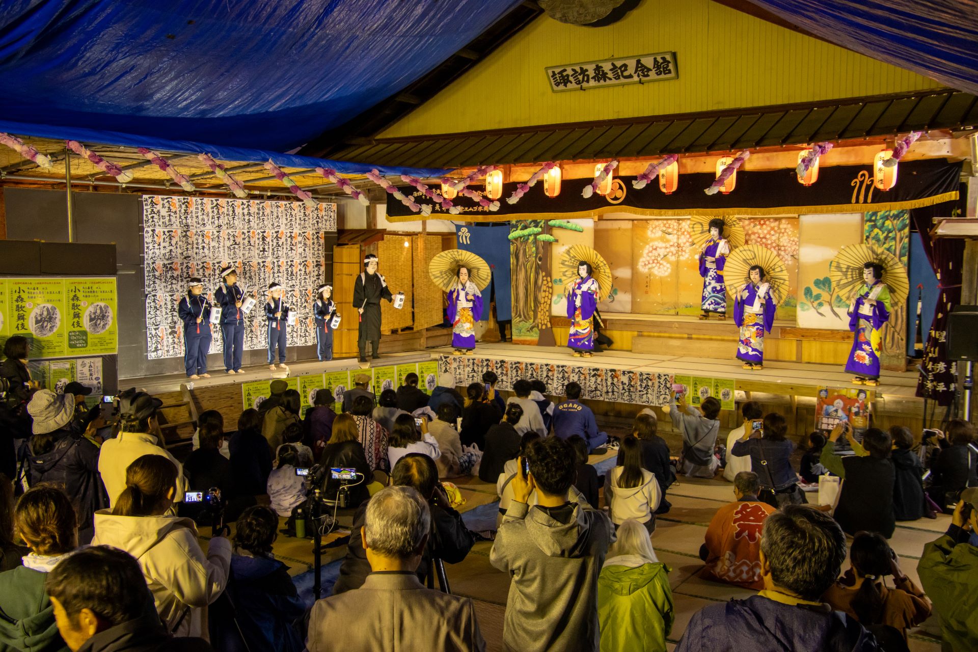 両神小森地内の諏訪神社において、例大祭が開催されました。境内の舞台では、地元の方々による舞踊や夕方からは町指定無形民俗文化財である「小森歌舞伎」が上演されました。