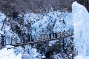 小鹿野町の冬の名物である「尾ノ内氷柱(おのうちつらら)」がオープンしました。1月24日(土)~2月15日(日)の間の土・日曜日には夜間のライトアップも行われ、昼間とは違った幻想的な雰囲気をお楽しみいただけます。