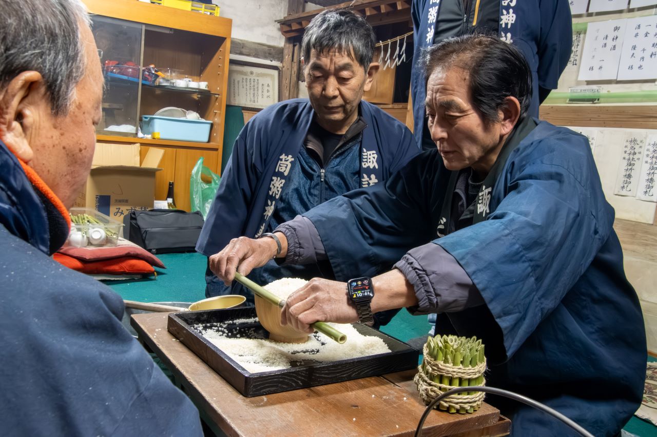 小鹿野町倉尾の馬上地区にある諏訪神社で県選択無形民俗文化財である、小正月の民俗行事「馬上のクダゲエ(管粥)」が行われました。