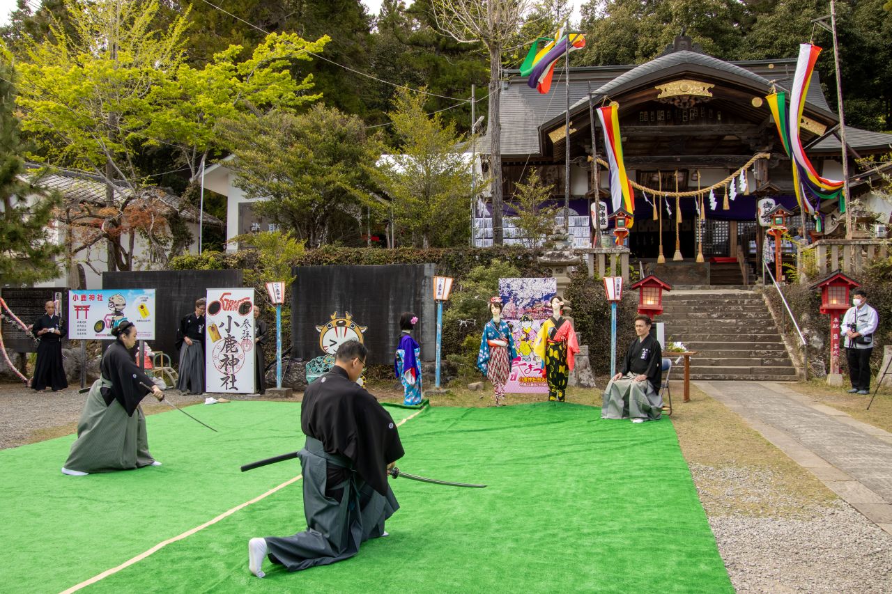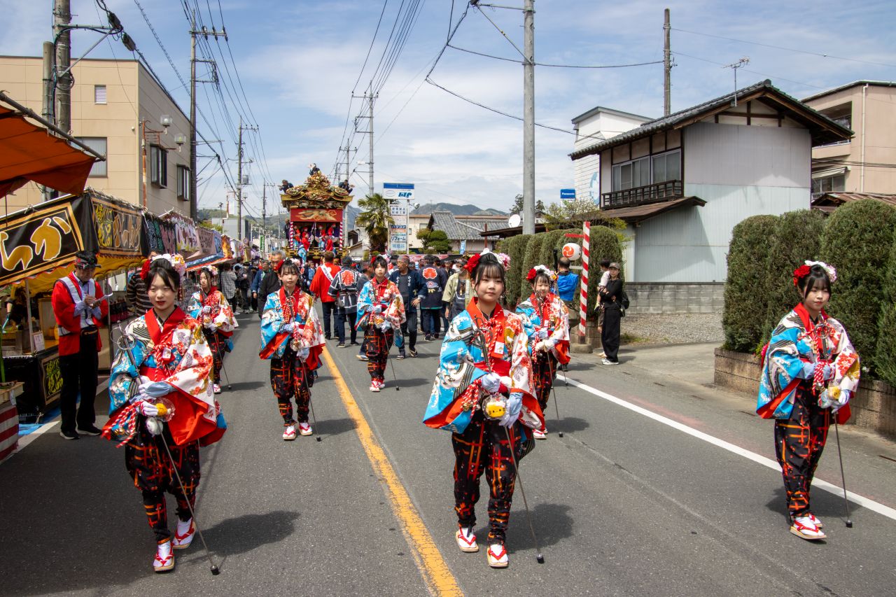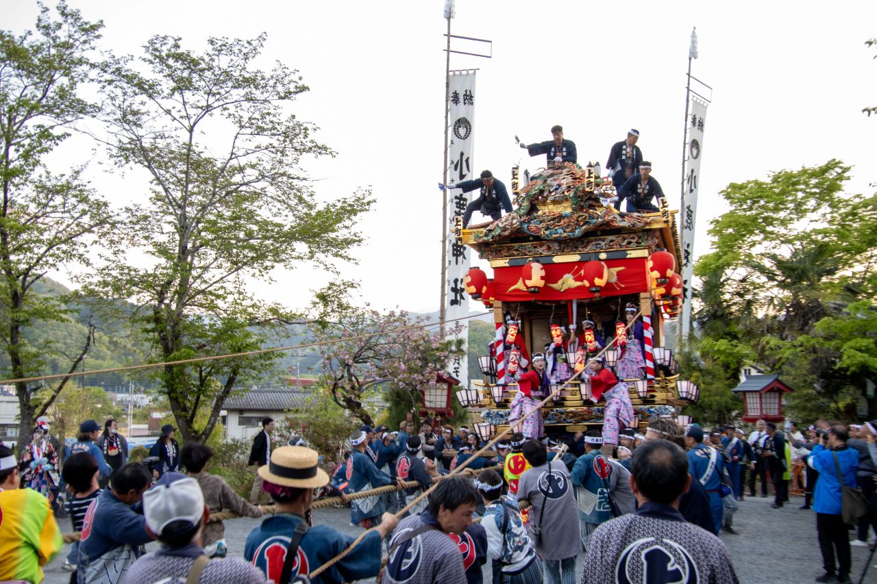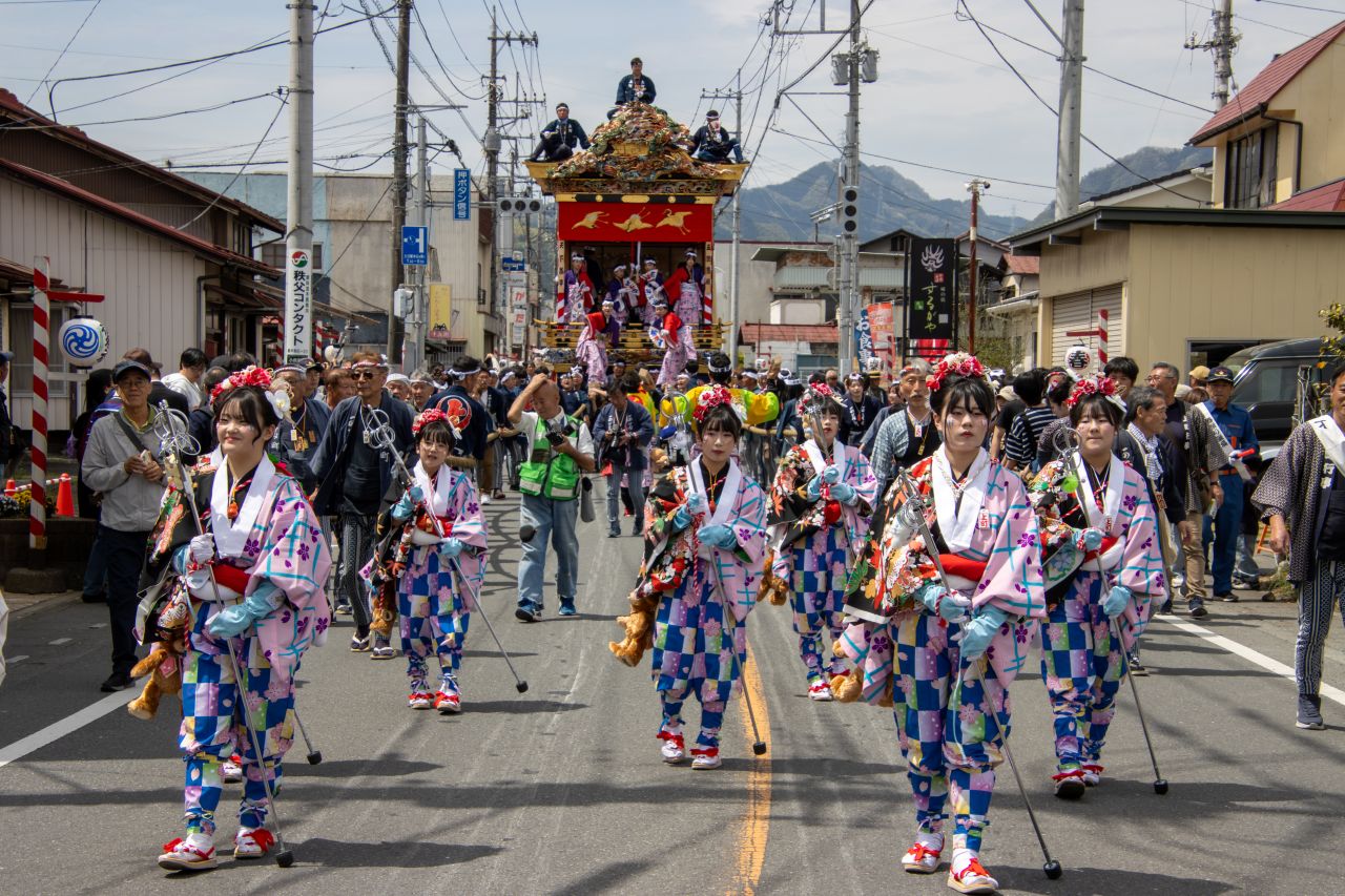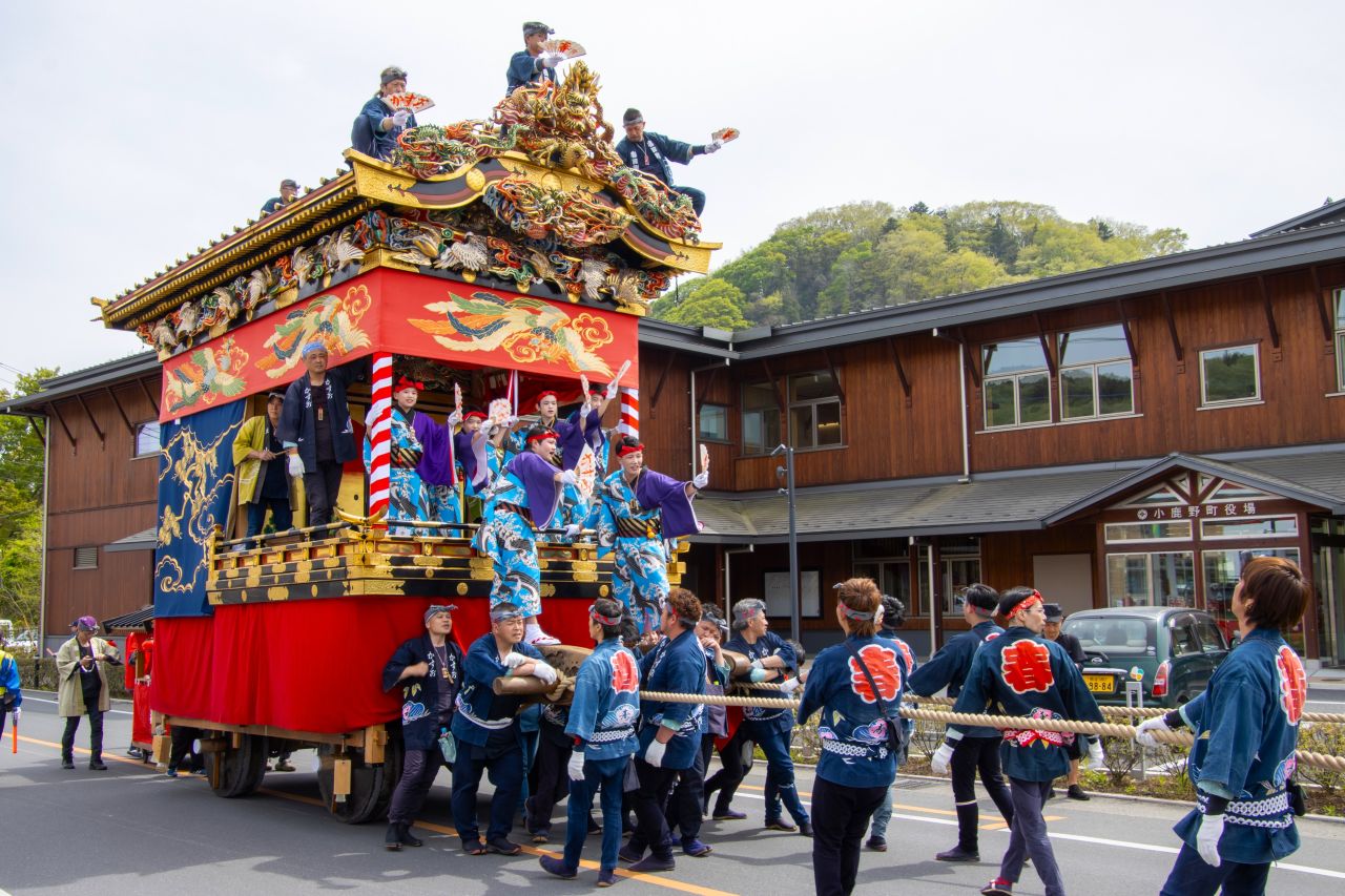 小鹿神社例大祭「小鹿野春まつり」が17日と18日の2日間に渡り行われました。絢爛豪華な「屋台」と「笠鉾」4基とそれらを先導する「金棒つき」と呼ばれる少女たち。秩父屋囃子のリズムと役人たちの掛け声が山間の町に響き渡りました。歌舞伎の上演や剣道演武なども行われ、多くの観光客で賑わいました。