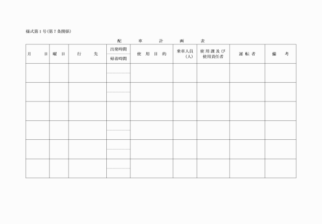 第9条 配車を管理する者は、自動車の効率的使用と運行の状況を検討し、配車計画表を作成しなければならない。ただし、配車計画表を作成しなくても運行に支障がないと認められる場合は、この限りでない。