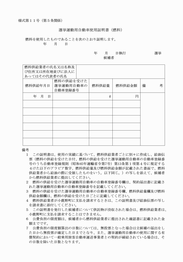 ○小鹿野町の議会の議員及び長の選挙における選挙運動の公費負担に関する規程