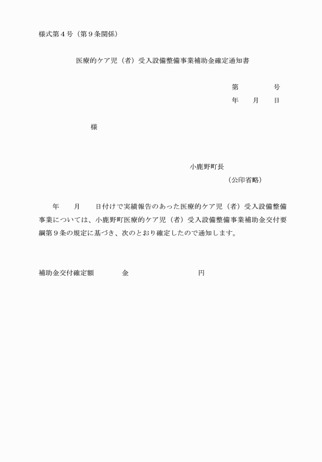 ○小鹿野町医療的ケア児(者)受入設備整備事業補助金交付要綱